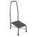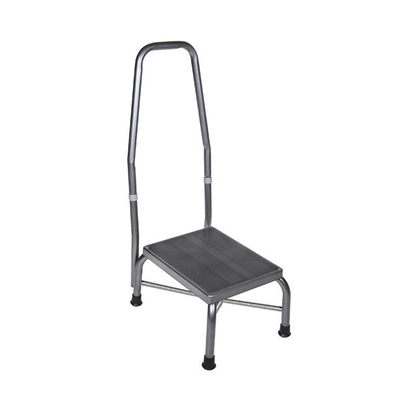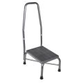 * With safetyrail * Nonslip corrugated surface * Silver-vein steel legs and rail * 10 x 14 step 9 high step * Rail height: 34 * Weight capacity: 300 lbs * 90 day warranty on the tips * Limited lifetime warranty on the frame