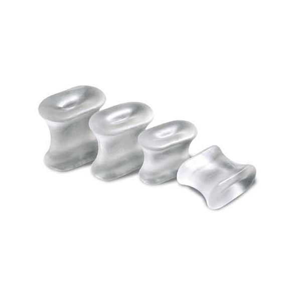* These soft gel spacers are worn between the big and second toes to prevent rubbing * They help align and straighten the big toe to rlieve pressure on bunions * Exclusive gel releases mineral oil to soothe and moisturize skin * Interchangeable for left or right foot