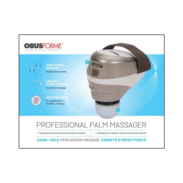 120V only. * The Professional Palm Massager is a percussion massage with soothing heat designed for various area of the body * Ideal for post sport use * Relax with pinpoint massage for targeted relief of areas that carry stress such as shoulders and lower back * Simple and lightweight design * Variable speed control up to 2 200 pulses per minute * 3 attachments for customized use: spot heat and contour *