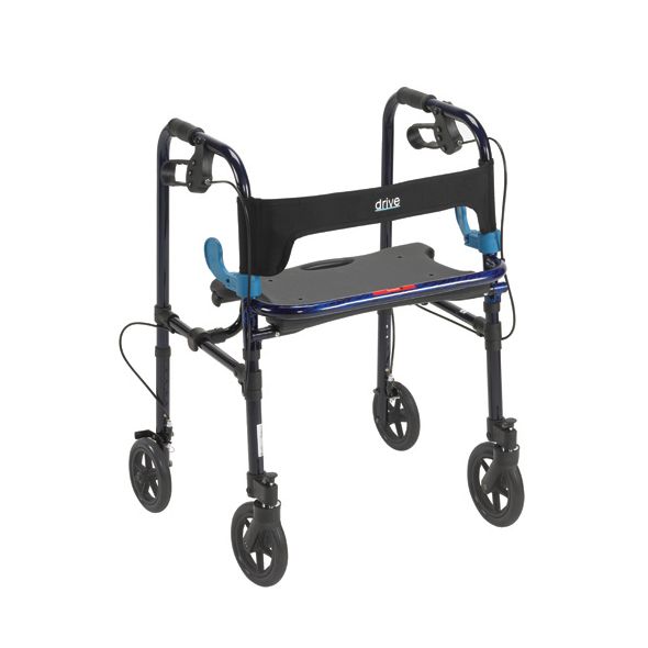 Adult 8 Casters * Comes with flip up seat with built in carry handle * Allows individual to be seated or by raising seat to step inside the frame to be used as traditional walker * Easily folds with dual clever side paddle release * Soft flexible backrest provides comfort and stability while seated * Loop locks provide added safety and security * Front wheels can be set in either swivel or fixed position * Attractive blue finish * Sturdy 1 diameter anodized extruded aluminum construction * Limited Lifetime Warranty * Lifetime warranty on brake cable * New 8 casters * Depth (Opened at Base): 23 * Height (Highest Setting): 33.5 * Height (Lowest Setting): 29.5 * Overall Width: 23 * Weight Limit: 300 lbs * Width (Inside Back Legs): 20 * Width (Inside Hand Grip): 18.5