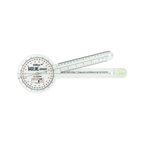 12 ABSOLUTE + AXIS * 1 EACH * The Absolute+Axis (AA) goniometer removes the assume and eyeball by establishing a true vertical or horizontal * The Absolute+Axis (AA) goniometer removes measurement variability and allows the practitioner to concentrate on correct placement of the other goniometer arm and the patient?s body position * The integral absolute vertical and horizontal levels are permanently incorporated into both the AA Baseline (2-color) 12 inch and Baseline? * Some measurements the AA goniometer is designed to improve are: shoulder and hip rotation (internal external) cervical flexion extension rotation and side bending; hamstring flexibility; and active ROM *