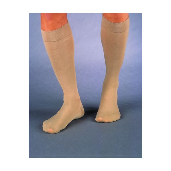 Knee High (Open Toe)  * Beige * 20-30 mmHg * Large * Ankle Circ. 10 - 11 7/8  * Calf Circ 12 1/2  - 18  1/8  * Affordable gradient compression hosiery * When managed care reimbursement limits product selection choices  Jobst Relief hosiery delivers compression therapy at an affordable price * Available in knee  thigh and waist styles * Available in beige and black features and benefits: * Closed toe styles are designed with a roomy toe space allowance for patients who require additional  wiggle room  * Accurate gradient compression therapy at a price patients can afford * 3-D knit structure using air covered spandex yarn that is soft to touch and comfortable for all day wear * Reinforced heel  designed for long-lasting durability * Styles to meet your patients? preferences  including knee  thigh and waist highs in closed or open toe designs and a variety of chap styles  plus full calf sizes in knee high styles * Relief is appropriate for use by both men and women * latex free